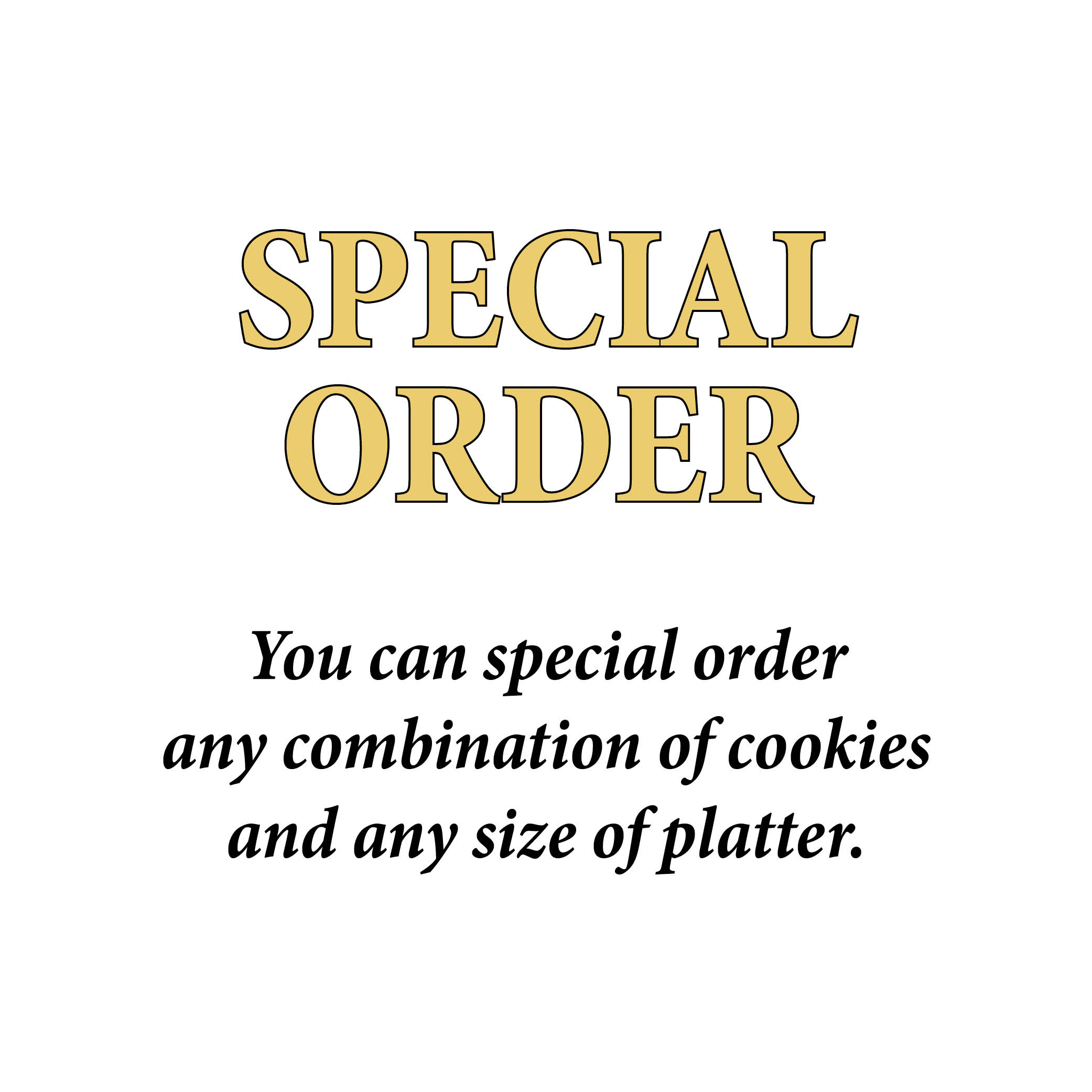 Need different size trays or a variety of different cookies Click Here to place a special order.